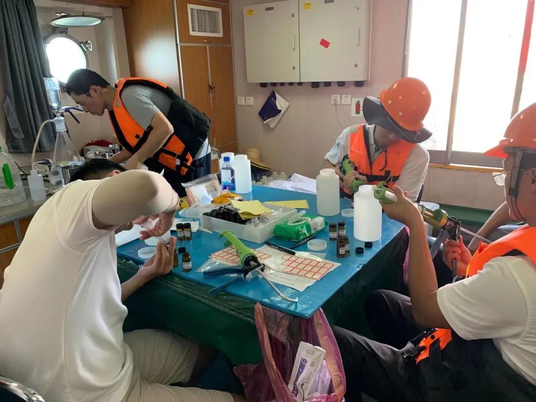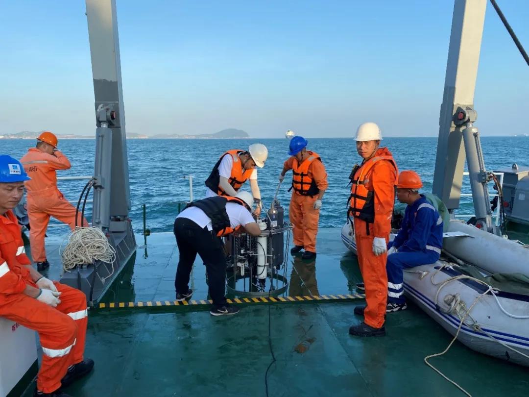 11月4日下午,科考团队抵达汕尾市品清湖码头登船。待试验设备调试检测完成后,科考船启航并于5日晚抵达珠江口万山群岛附近海域预定锚区。6日至9日科考团队沿规划航线在珠江口内伶仃洋开展考察采样工作,团队成员团结协作,克服风浪高温等不利因素顺利完成了超过30个测点数据及样品采集任务。 科考团队对观测点处海水诸多参数进行随船或采样测试,探索盐度、温度、pH值、DOC含量、DIC含量、海洋微塑料含量等随深度的变化规律。同时,对表层淤泥进行了抓斗式采样,着重考虑近岸沉积条件下淤泥质土的物理力学性质以及空间变异特性。这为构建面向水生态-水环境-水资源的系统调控模型提供了实测数据支撑。