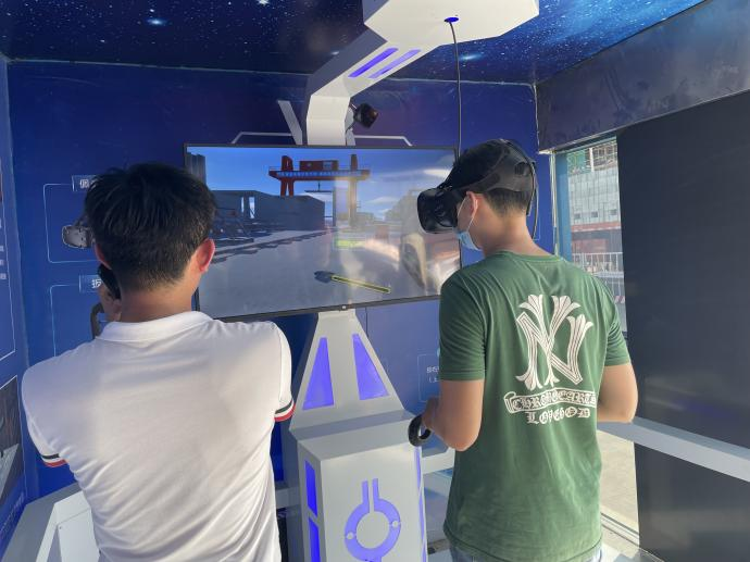 ▲同学们正在通过VR技术体验安全施工的重要性