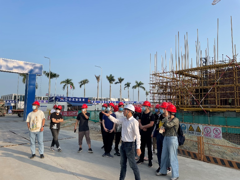 ▲工程师在为同学们讲解海琴1号大楼的建设概况